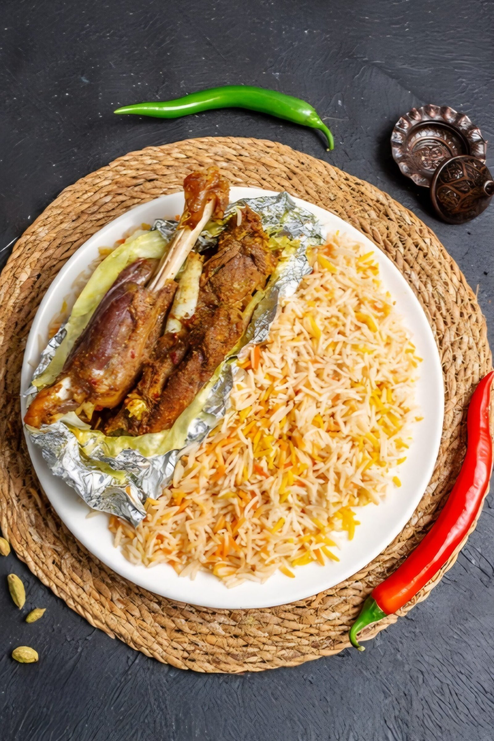 للحم يذوب في الفم، يُقدم مع أرز المندي الذهبي